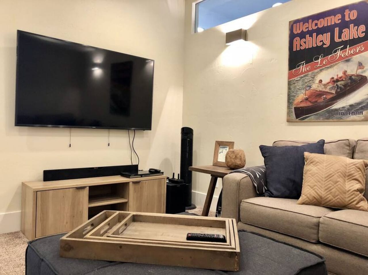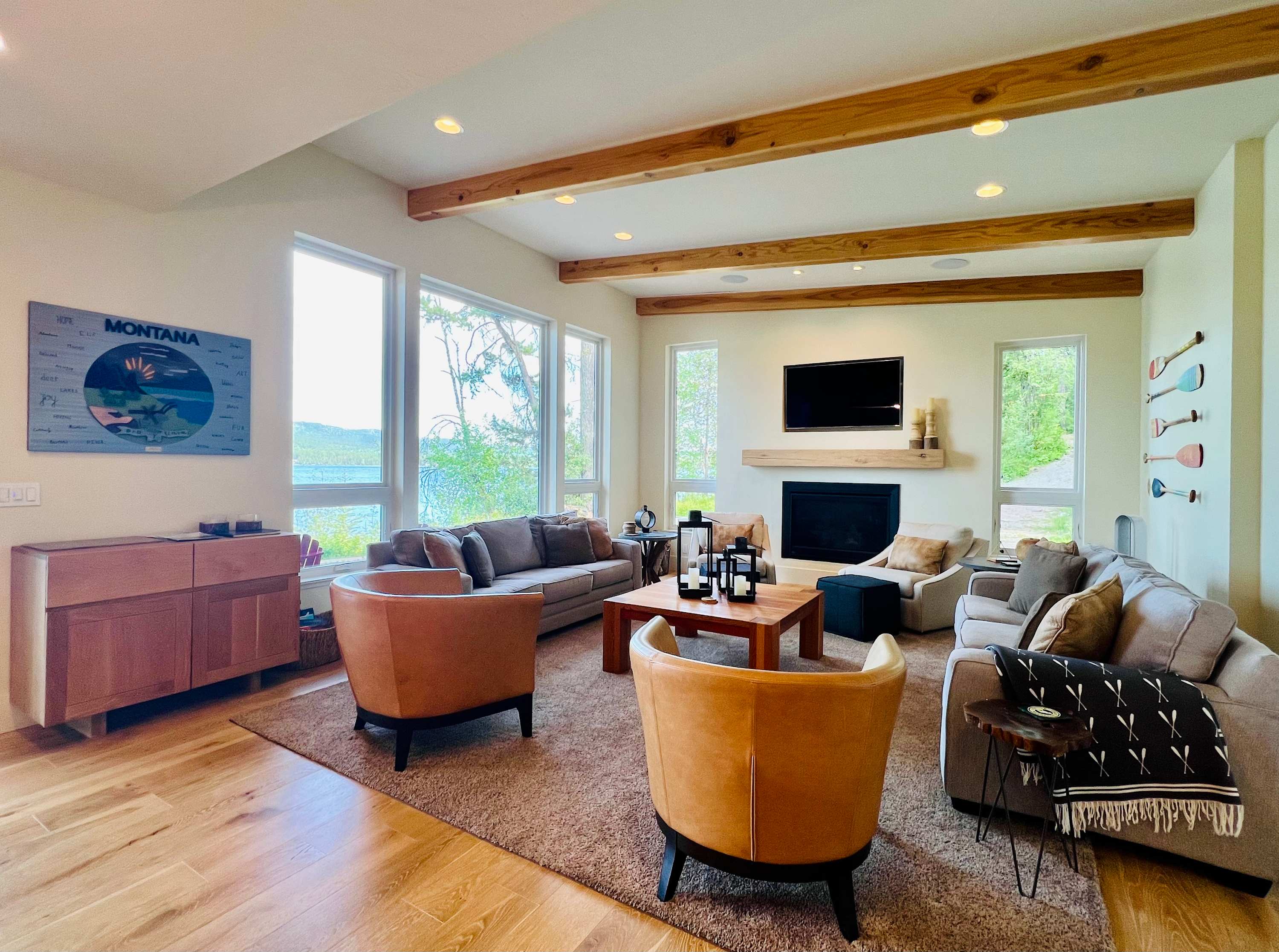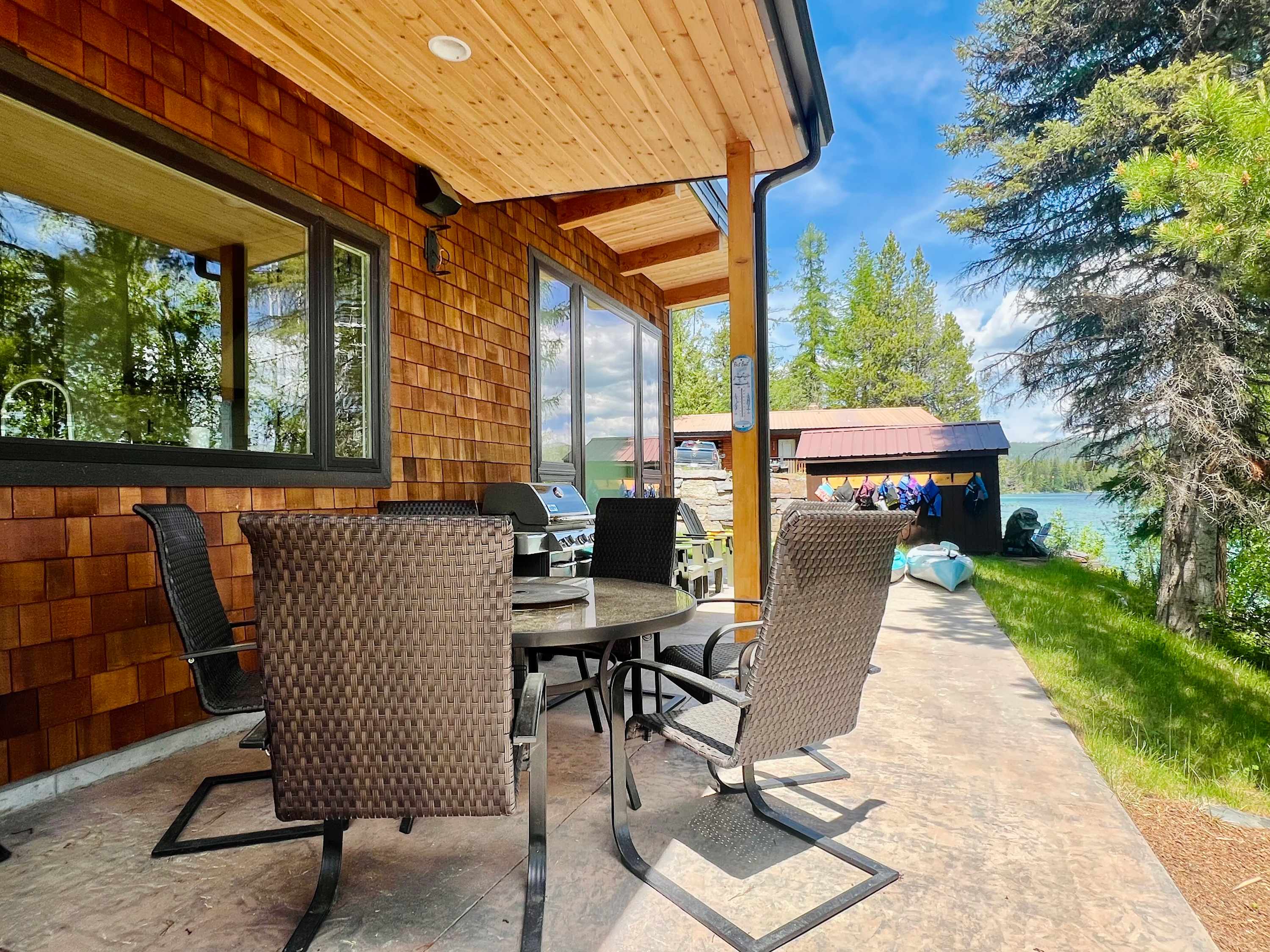 Ashley Lake Waterfront & Access / Boat Dock / Fire Pit / BBQ / 1 Canoe / 2 Adult Kayaks / 2 Kid Kayaks Paradise Found, Modern Dream Home on Ashley Lake is the ultimate Montana vacation destination! Whether you are planning a romantic get-away, writer retreat or family reunion all you need is here at Paradise Found for your recharge time. Ready to get outside?! Walk out of the dining room through the glass slider onto the covered patio and enjoy your morning coffee or an evening glass of wine while you grill your freshly caught fish on the large propane grill. Walk down the rock steps to the boat dock with boat slip. Paradise found offers everything perfect for your water fun enjoyment - two kayaks, two kid kayaks, a canoe and many life jackets for guest use. One of the Flathead Valley’s hidden gems, Ashley Lake is large, more than a mile in width and 5 miles in length and gets very deep in places. It is superb for getting out on the water in your boat and kayaks. Known for its great fly-fishing, because rainbow trout and cutthroat trout are the primary fish species found in Ashley Lake. Some of the rainbows, particularly the hybrid rainbows that are planted, can get huge. Fish exceeding five pounds are fairly common and it is not unheard of taking rainbow trout exceeding ten pounds. The best fly fishing on the lake for these large trout is along the shoreline, particularly in the morning and evening hours, as well as near the inlets of the various feeder creeks and streams. This home is open for online reservations starting 3 days from today's date if available. For last minute reservations, please contact us via phone or email as the calendar may not reflect all availability. 12 people max. No Smoking. No Pets. No large events. ***** This property is managed by Enjoy Montana Vacation Rentals. Should you have a last-minute reservation, please contact us directly and we will do our best to accommodate, where possible and dependent upon availability. In addition to the amenities listed up above, this home is equipped with basic supplies such as: linens, towels, a few rolls of toilet paper, a roll of paper towels and cleaning products. The kitchen comes with standard amenities, coffee maker, and utensils. Should you need more specific items, we may be able to provide them at an additional cost under our concierge services. Please do not hesitate to ask, and we will see what we can do. Cancellation Policy: ** Please note, if a reservation is canceled at least 60 days prior to the reservation arrival date the reservation IS REFUNDABLE, MINUS the processing fee. The processing fee is paid to the credit card company upon booking your stay. ** Please note, if a reservation is canceled less than 60 days prior to the reservation arrival date the reservation is NON-REFUNDABLE IN ITS ENTIRETY.