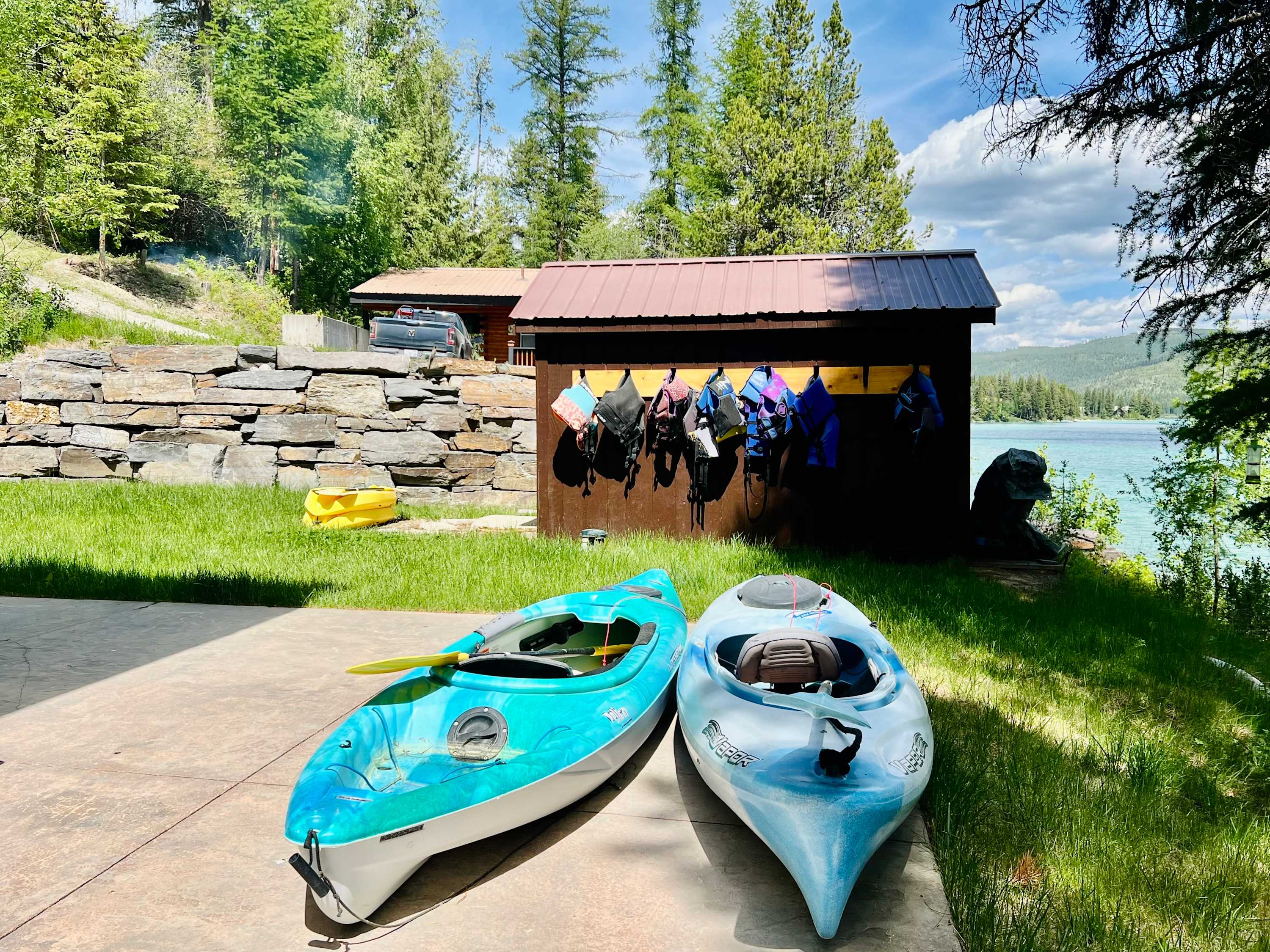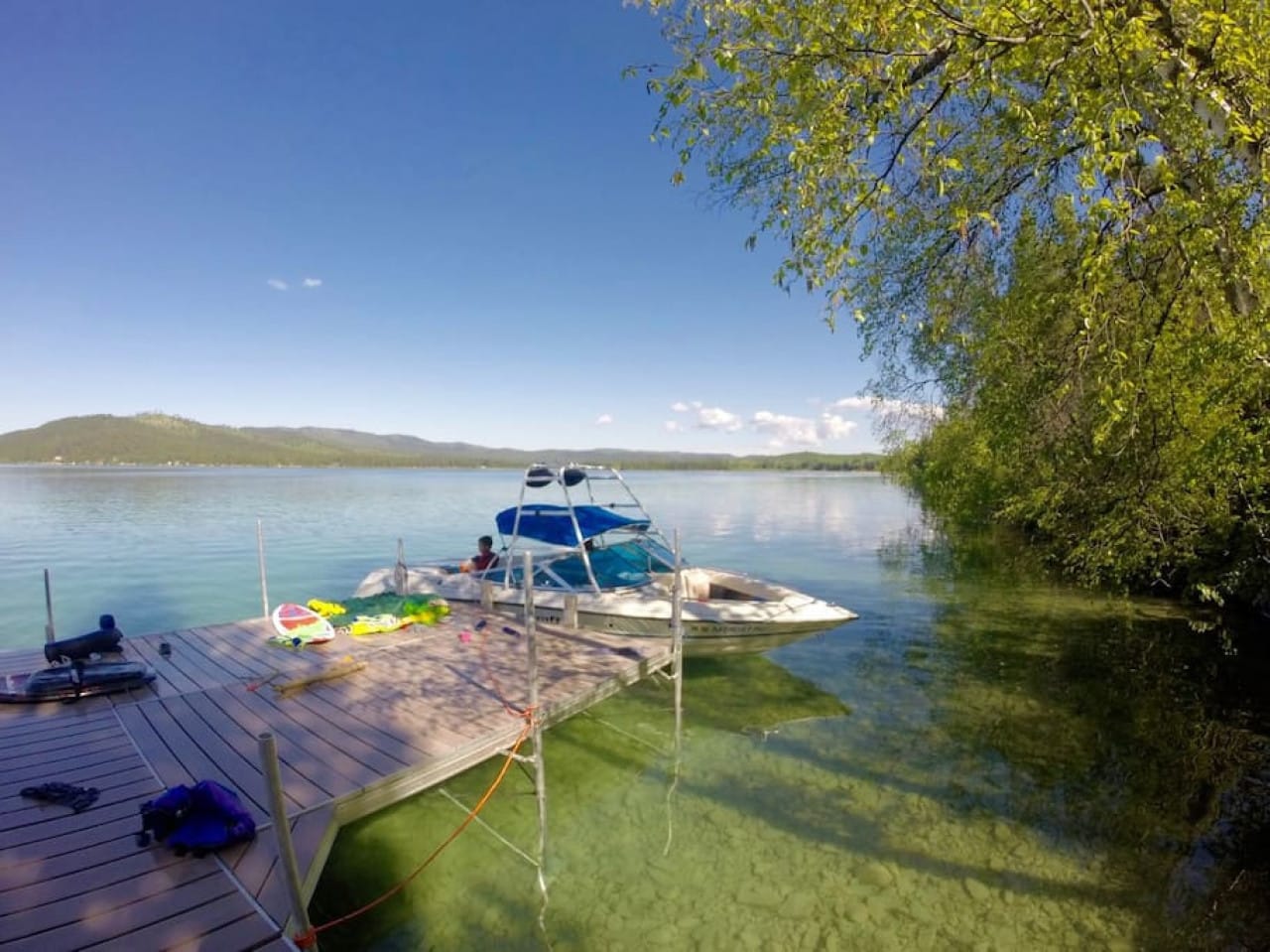 June 2025 5.00We loved our stay! The house is bigger in person than what it looks like in pictures. It’s a very cozy, picturesque setting. The lake is absolutely beautiful - crystal clear blue water! The water is chilly, but not terrible. We did use wetsuits for boating, so I’d bring some if there in the early summer season. We pretty much had the lake to ourselves all week. The house was stocked with everything we needed. We used the fire pit every night at sunset. This home feels very remote - perfect if you’re wanting to unplug and get away from the noise. We saw so much wildlife too (elk, owls, eagles, rabbits, frogs, geese, deer), it was magical! It was a great week of bonding time and fun for our family.