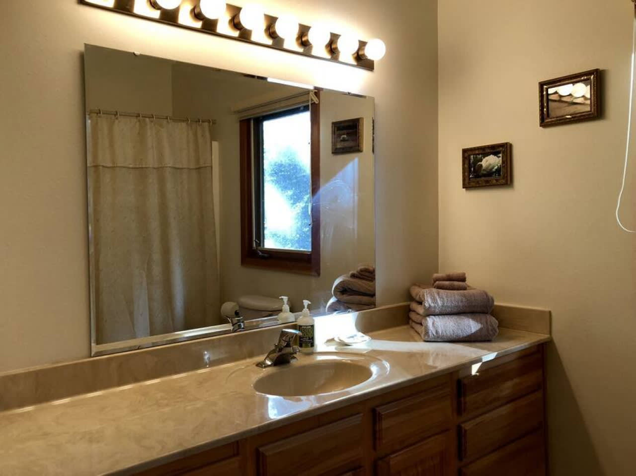 August 2025 5.00There were 6 of us at the home and we were very comfortable. The home is very well equipped with linens, kitchen tools , furniture, TV streaming options, spices, books, games, and fun water toys. The address location and sign need some major improvement. The master en-suite is located upstairs and there is no A/C. It was really warm but here was a fan . Overall the A/C was very powerful and nice after a warm day on the lake. The setting was stunning and the neighbors were very nice. The house is not remote but it is quiet after 10. The lake is glass in the early morning and then again in the evening. But it is always pleasant to be on. One bathroom on the main floor only has a tub and no shower head. There are so many extra bath towels and beach towels. The bbq grill was very good and the fire pit was a nice feature. We did some amazing star gazing. Looking forward to visiting this same exact home again. Thank you !