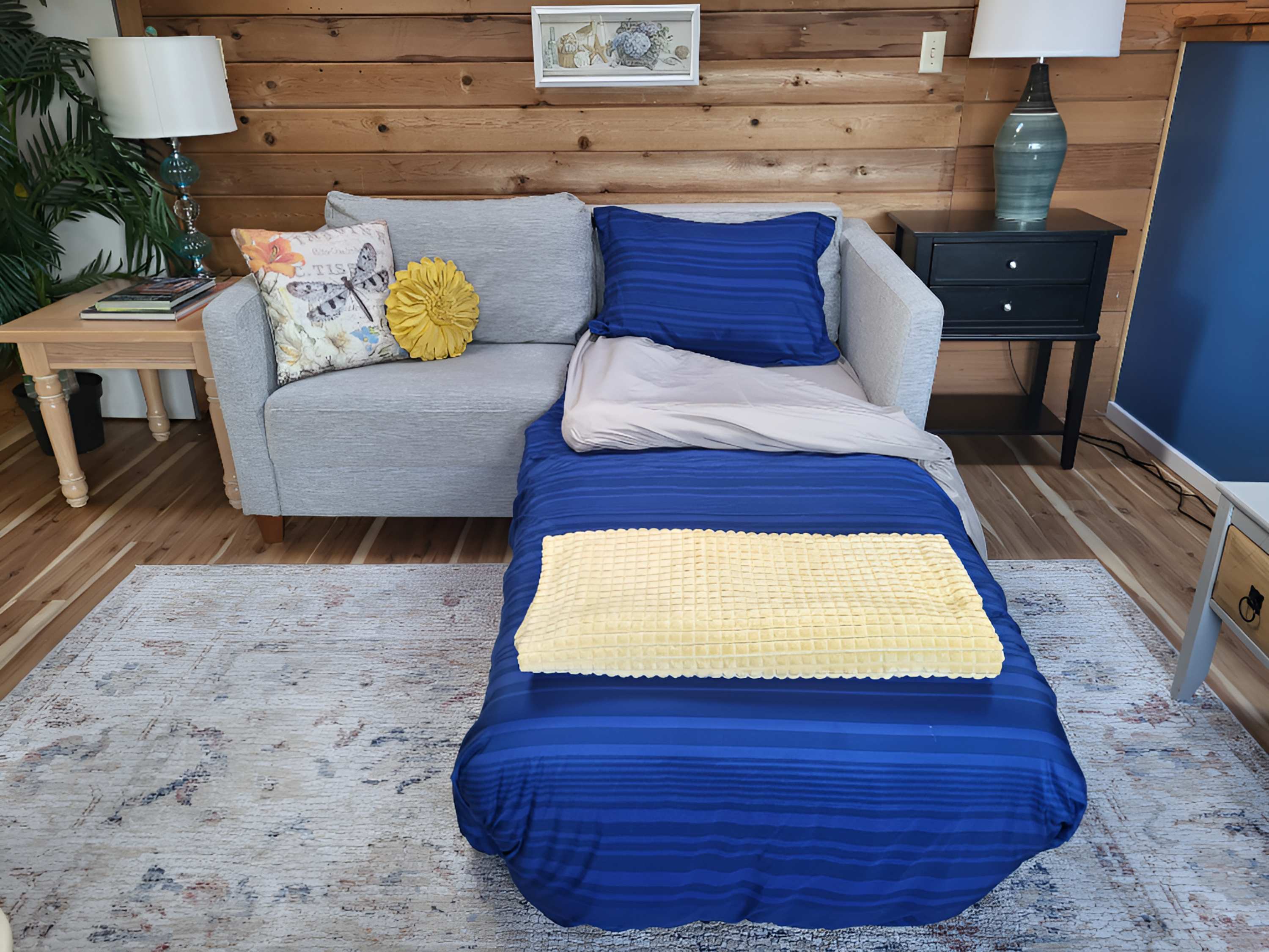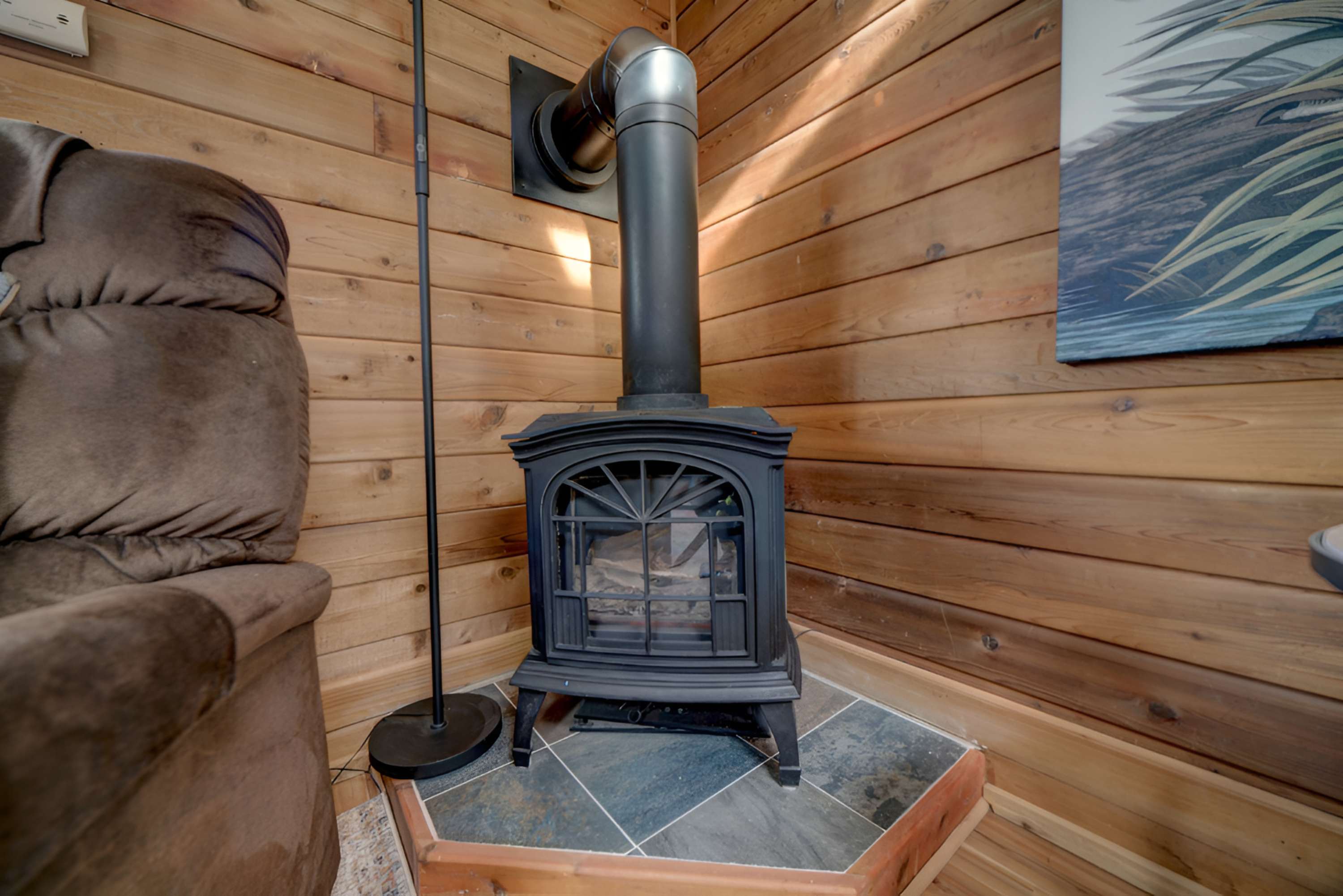 Take it easy at this unique and tranquil getaway while watching the amazing sunsets from your huge deck. This unit has AC in the summer months and a fireplace for winter. 2) Sleeper sofa converts to either a full or twin-sized bed. 3) A kitchenette and a multi-functional outdoor grill will accommodate most cooking needs.